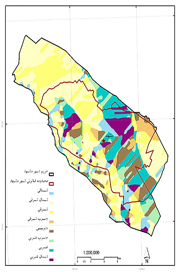 - دﺷﺖ ﻣﺸﻬﺪ ﻣﻴﺎن دو رﺷﺘﻪ ارﺗﻔﺎﻋﺎت ﻫﺰارﻣﺴﺠﺪ – ﻛﭙﻪ داغ در ﺷﻤﺎل و ﻣﺤﻮر بینالود- ﺷﺎه ﺟﻬﺎن در ﺟﻨﻮب واﻗﻊ ﺷﺪه اﺳﺖ (وزارت ﻣﺴﻜﻦ و ﺷﻬﺮﺳﺎزي ﺷﻬﺮداري ﻣﺸﻬﺪ -ﻣﻬﻨﺪﺳﺎن ﻣﺸﺎور ﻓﺮﻧﻬﺎد)